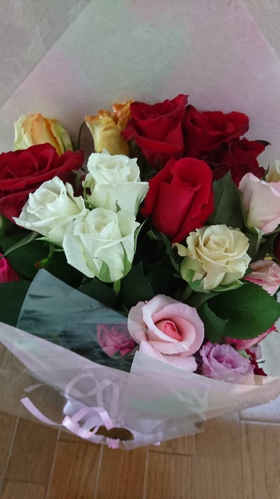 届いたバラは美しくラッピングされており、わくわくしました。