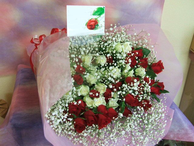 バラの花束にかすみ草を付け足します