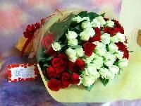 赤バラと白バラのミックス花束